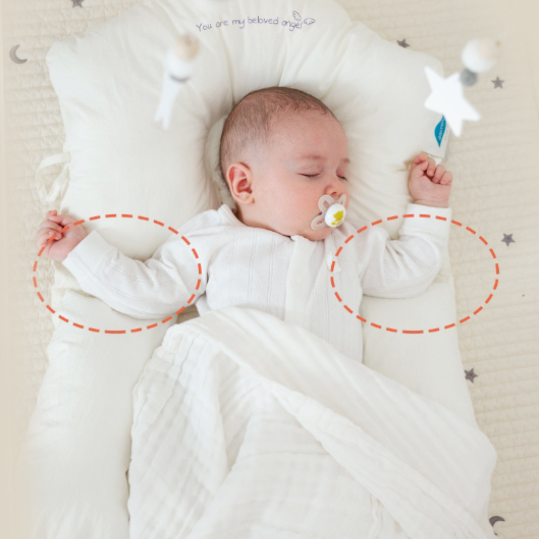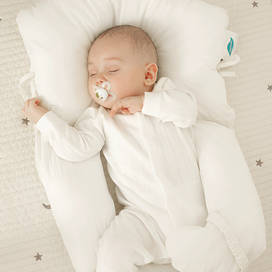 Unser Neugeborenes schläft endlich sicher und gebettet! Das Kissen verhindert das Umkippen und gibt sanften Halt. Ein Muss!