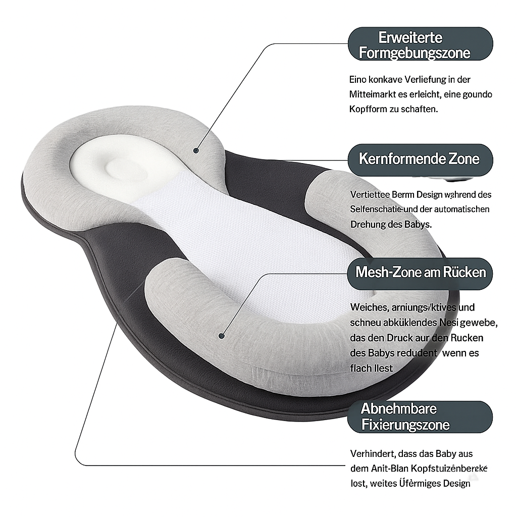 Fördert ruhigen Schlaf, beugt dem Flacher-Kopf-Syndrom vor und unterstützt eine gesunde Körperhaltung. Ideal für Zuhause und unterwegs. Aus sicheren Materialien gefertigt.